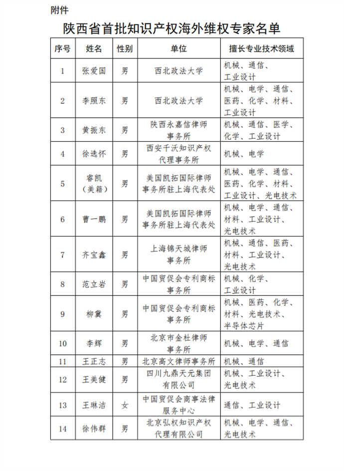 附件:陕西省首批知识产权海外维权专家名单