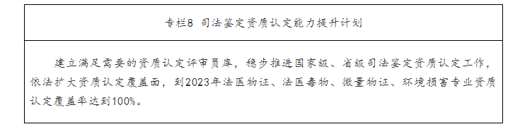 ——增强司法鉴定质量和公信力。持续深化司法鉴定管理体制改革,完善准入退出机制,建立健全诚信等级评价体系,完善司法鉴定人职称评审制度。加强质量建设,创新认证认可、能力验证工作。加强事中事后监管,加大对违法违规行为的查处。加快信息化建设,实现全要素、全流程监管。推动司法鉴定行业转型升级,优化服务资源布局,建设一批高资质、高水平司法鉴定机构。