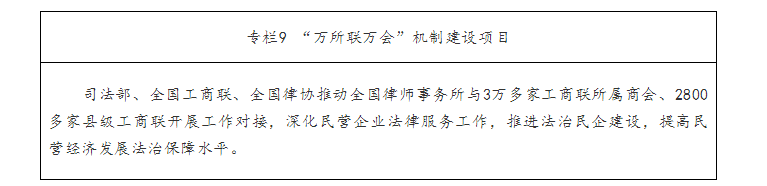 (二十五)营造法治化营商环境。鼓励支持律师为银行、证券、保险、知识产权保护、环境保护等市场经济专业领域提供法律服务,把律师专业意见作为股票公开发行、国有企业产权非公开转让等特定市场经济活动的必备法律文书。推进民营企业“法治体检”常态化,建立“万所联万会”法律服务机制。增强“法律进企业”法治宣传的针对性和实效性,促进企业依法诚信经营。放宽省级以下(含省级)公证业务办理行政区划限制。不断深化公证在服务金融、民营企业、知识产权保护等领域的实践,落实便企利民政策措施,拓展高频事项“跨省通办”天生赢家凯发k8国际的业务范围。发挥仲裁制度的中立性、保密性、专业性等优势,着力化解市场经济和涉外经贸领域的民商事纠纷。加强仲裁、调解等法律及社会服务资源统筹,打造国际商事争议解决平台,加强企业和商会调解工作。