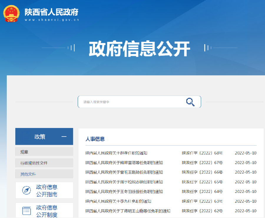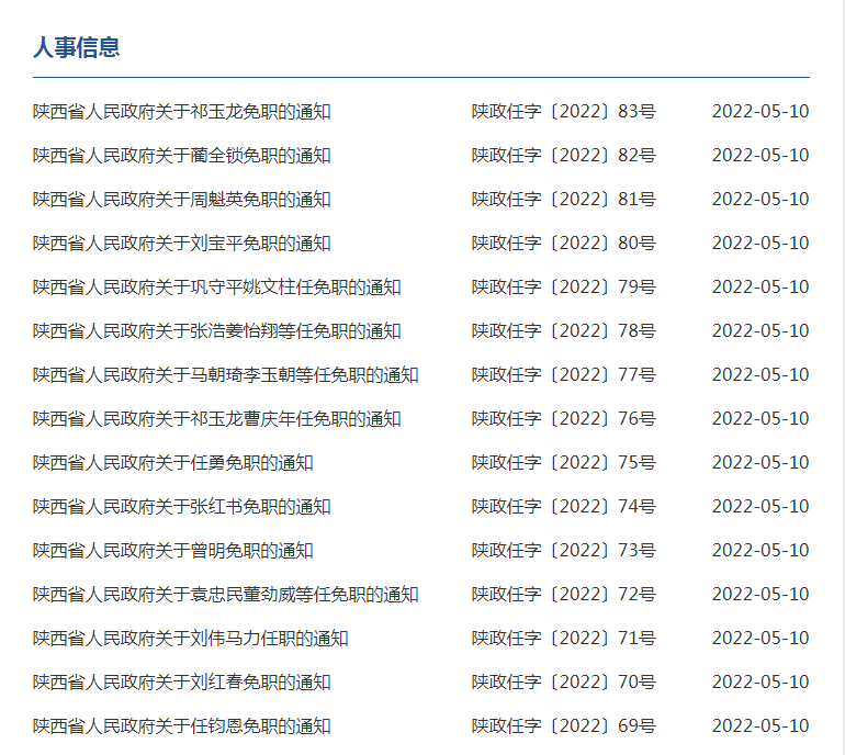 5月10日,陕西省政府发布一批人事任免通知。