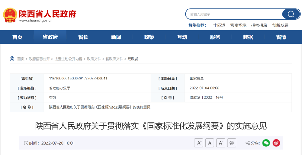 陕西省人民政府关于贯彻落实《国家标准化发展纲要》的实施意见