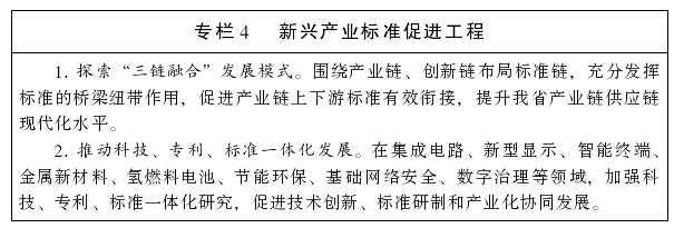 (五)加强战略性新兴产业标准引领。围绕创新链、产业链布局标准链,加快新一代信息技术、高端装备制造等支柱产业标准贯彻实施和人工智能、氢能、未来通信技术、北斗应用等新兴未来产业标准研究应用。建立完善生产制造、文化教育、旅游体育、医疗卫生、数字金融等领域智慧化转型标准体系,促进数字产业发展壮大。加快新产品、新业态、新模式相关标准研制,健全依据标准实施科学有效监管机制。