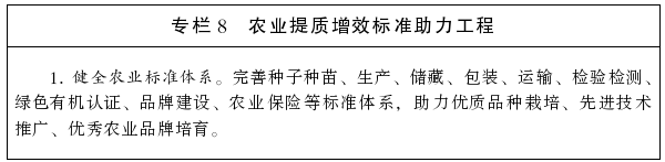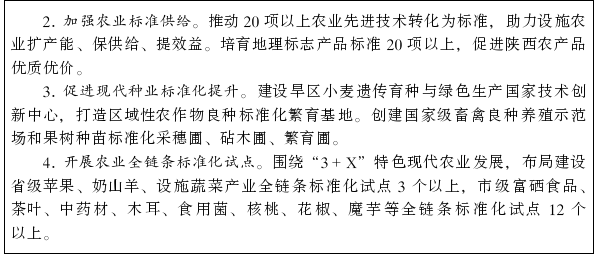 (十三)加快乡村振兴标准化建设。加强高标准农田建设,推进农作物、畜禽良种、水产种业技术标准研制,实施粮食、生猪等标准化生产。发挥杨凌示范区示范引领作用,建立现代农业全产业链标准体系,支持国家技术标准创新基地(旱区农业)建设,推进智慧农业、绿色农业标准化。完善乡村建设行动标准技术支撑,培育农业领域企业标准“领跑者”,推进特色农产品、休闲农业、乡村旅游等标准化试点项目。