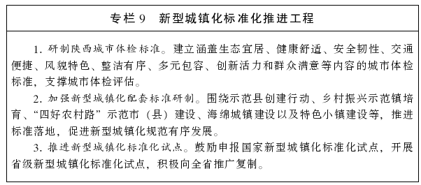 (十五)探索开展城市标准化建设。在城市规划、设计、建设、管理各方面和城市经济社会发展全领域,探索以城市为载体的全面标准化。以关中平原城市群、西安都市圈为重点,开展智慧城市建设、交通设施建设、生态环境治理、产业分工协作、公共服务共享等标准化工作,推动城市间互联互通、协同发展。支持有基础的城市开展城市标准化综合试点。
