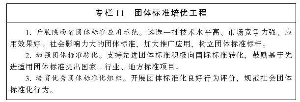 (三十五)强化法治保障。加强标准化法制建设,推动做好《陕西省标准化条例》等地方性法规、规章、规范性文件和现有地方标准的立改废释工作。加快推进陕西省《专业标准化技术委员会管理办法》《标准化专家管理办法》《团体标准、企业标准自我声明公开和监督管理办法》等相关文件制修订工作。